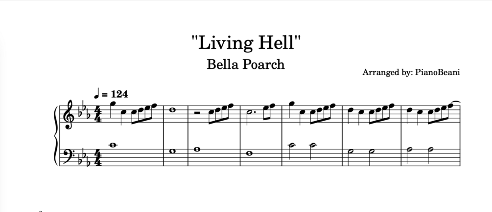 Bella Poarch - "Living Hell" - EASY Piano Sheet Music