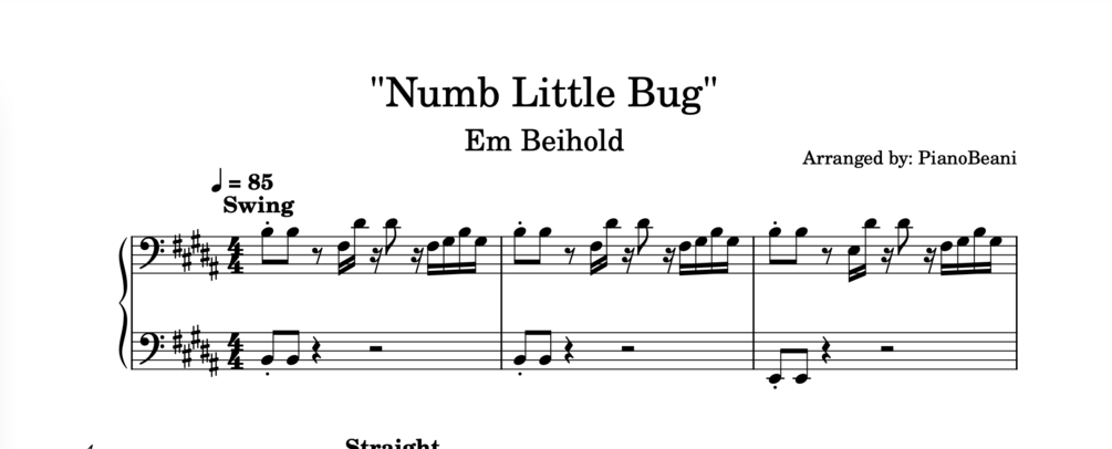 Em Beihold - "Numb Little Bug" - EASY Piano Sheet Music